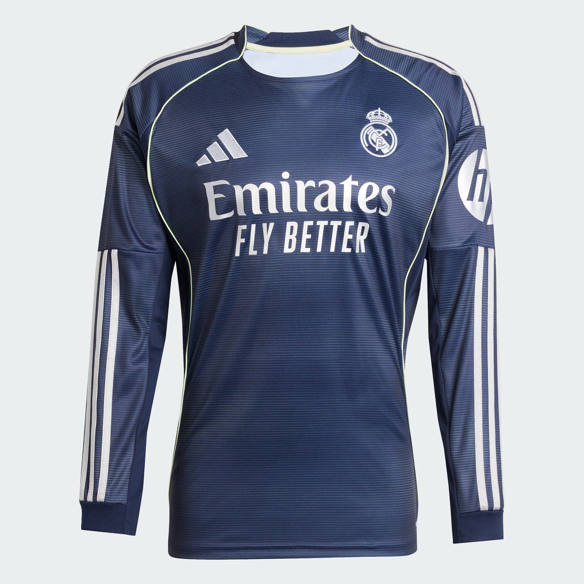 As Real Madrid's world-famous stadium enters a brand-new era, this adidas away football jersey pays tribute to magical nights at the Santiago Bernabéu. Its moiré effect print and silver metallic details combine to mimic the gleaming facade of the renovated arena. Moisture-managing AEROREADY ensures fans feel home comforts when they're on the road with their team.